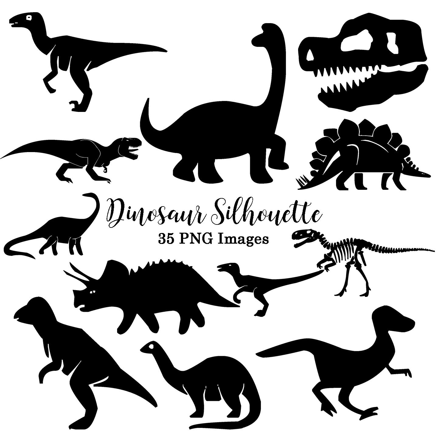 Dinosaur Party Black And White Silhouette Clipart Birthday Etsy