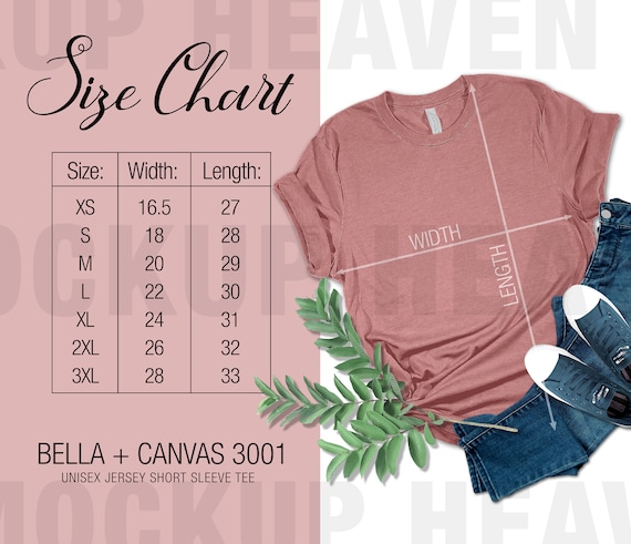 Bella Canvas 3001 Size Chart Heather Mauve Color T Shirt Etsy
